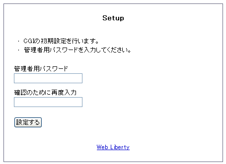 自分のHPのメニューから「DiaryPro」に入ると新規設定の為のパスワード入力を求められます、