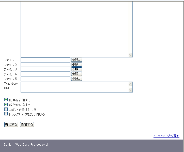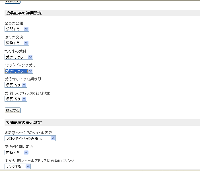 本文の下にコメントを受け付ける、トラックバックを受け付けるにチェッがあることを確認します。(*注:画像にはチェックは有りません)